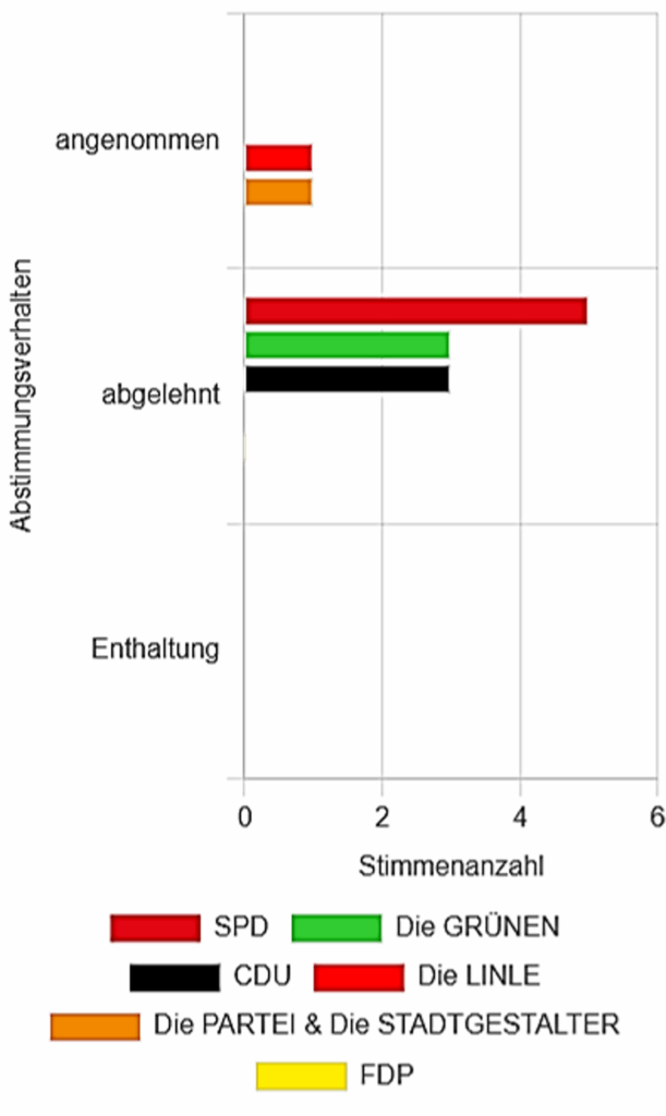 Die Ratsfraktionen SPD, GRÜNE, CDU, UWG: Freie Bürger und FDP lehnten den Antrag dann ebenfalls ab.